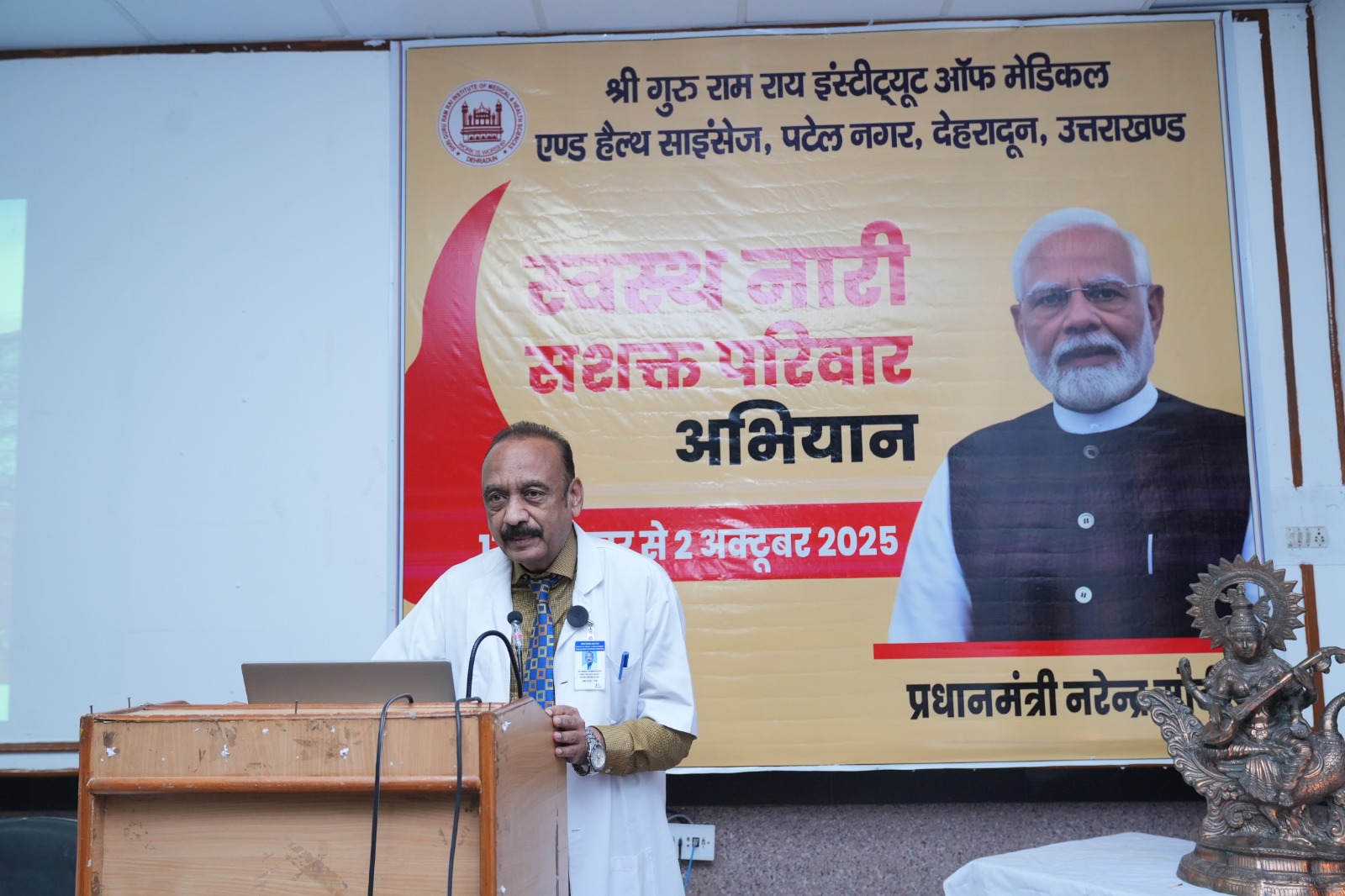 उन्होंने बताया कि श्री गुरु राम राय इंस्टीट्यूट ऑफ मेडिकल एंड हेल्थ साइंसेज एवं श्री महंत इन्दिरेश अस्पताल 17 सितम्बर से 2 अक्टूबर 2025 तक चलने वाले “व्यापक स्वास्थ्य पखवाड़ा कार्यक्रम” में उत्तराखंड स्वास्थ्य विभाग के साथ मिलकर विभिन्न स्थानों पर निःशुल्क स्वास्थ्य शिविरों का आयोजन कर रहा है। प्रधानमंत्री नरेंद्र मोदी के जन्मदिवस पर शुरू हुआ यह अभियान समाज को यह संदेश देता है कि “स्वस्थ नारी ही सशक्त परिवार की आधारशिला है।” श्री महंत इन्दिरेश अस्पताल का यह प्रयास निश्चित रूप से प्रदेश में महिला स्वास्थ्य जागरूकता को नई सकारात्मक दिशा देने वाला साबित होगा।